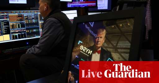 The Dow Jones industrial average, which tracks 30 major US companies, has dropped by 0.9% – shedding 383 points to trade around 42,418.