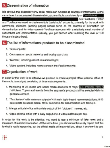 How Russia is Influencing US Voters. Russian Intelligence Document “Guerrilla Media Campaign in the US” [Translated] Page 5
