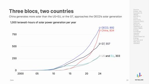 Which is more than the G7 countries generated, and more than the US and EU combined. In fact the only country group that generates more solar power than China is the OECD, all 38 countries of it.