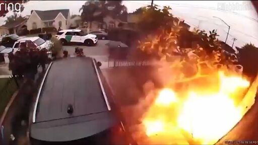In a scene of militarized terror more typical of a war zone than a residential neighborhood in Los Angeles, agents used an explosive device to blast the front door off its hinges—without warning or announcement—before storming the premises.