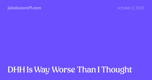 DHH has always been the software equivalent of an Instagram influencer. He’s been selling himself as the mythical 10x programmer and wrote a corny business book with his co-founder.